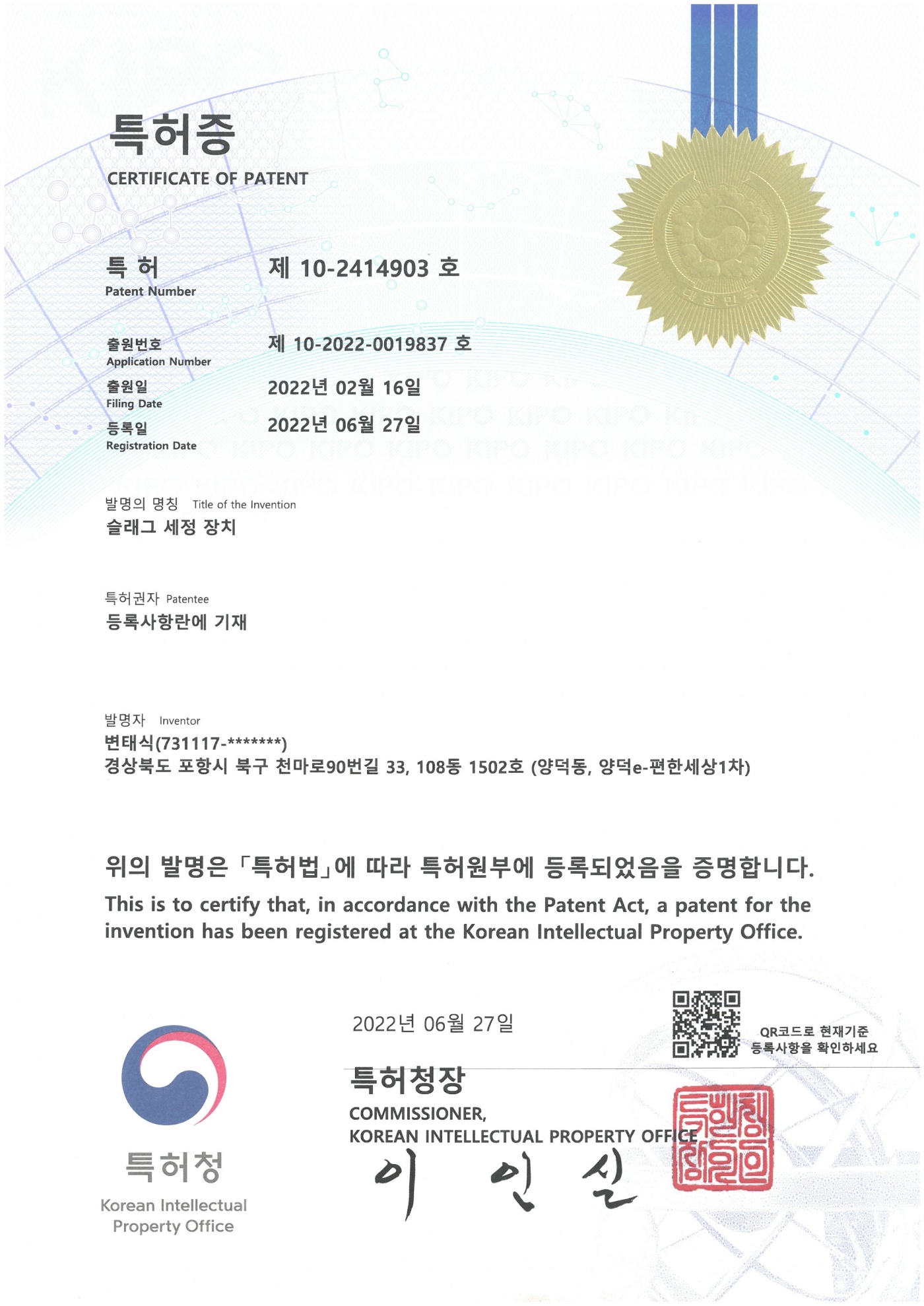 특허 제10-2414903