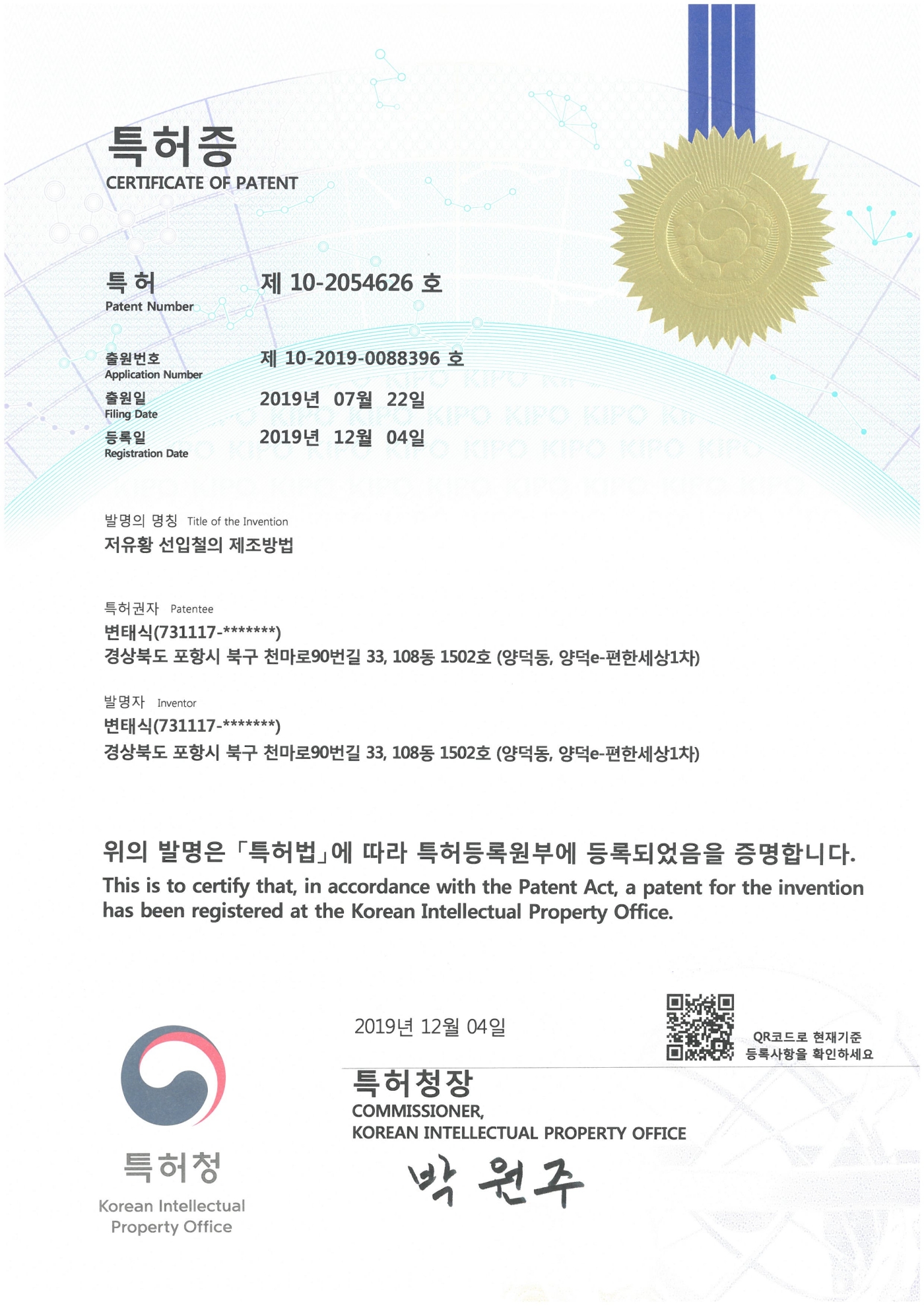 특허 및 인증