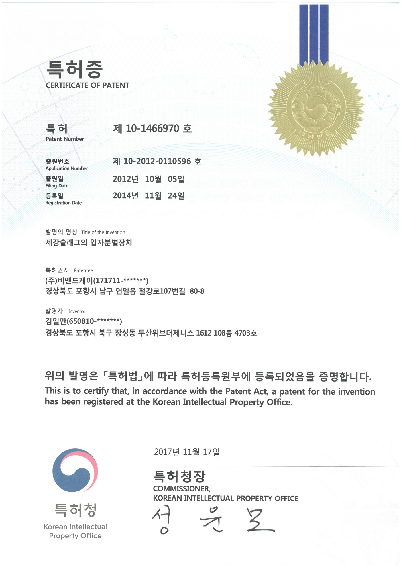 특허 제10-1466970